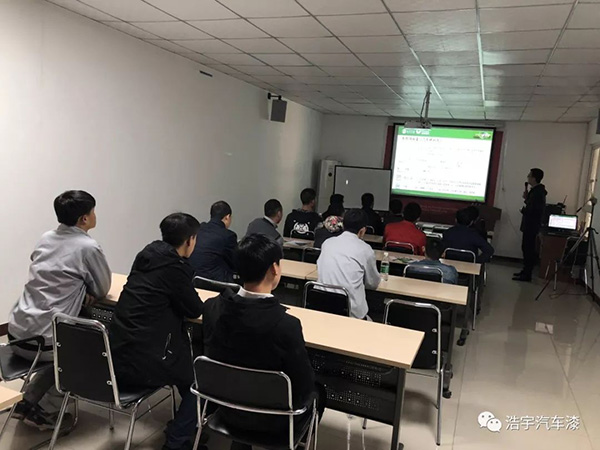 浩宇科技威凜水性漆的產(chǎn)品性能和使用方法培訓(xùn)現(xiàn)場